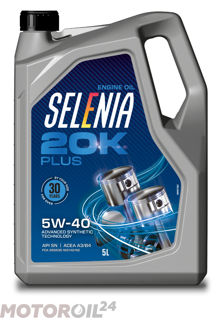 SELENIA 20K PLUS 5W-40 – смазочный материал на синтетической основе, специально разработанный для автомобилей с дизельными и бензиновыми двигателями стандарта Евро-4 с непосредственным впрыском, как без наддува, так и с турбонаддувом.
